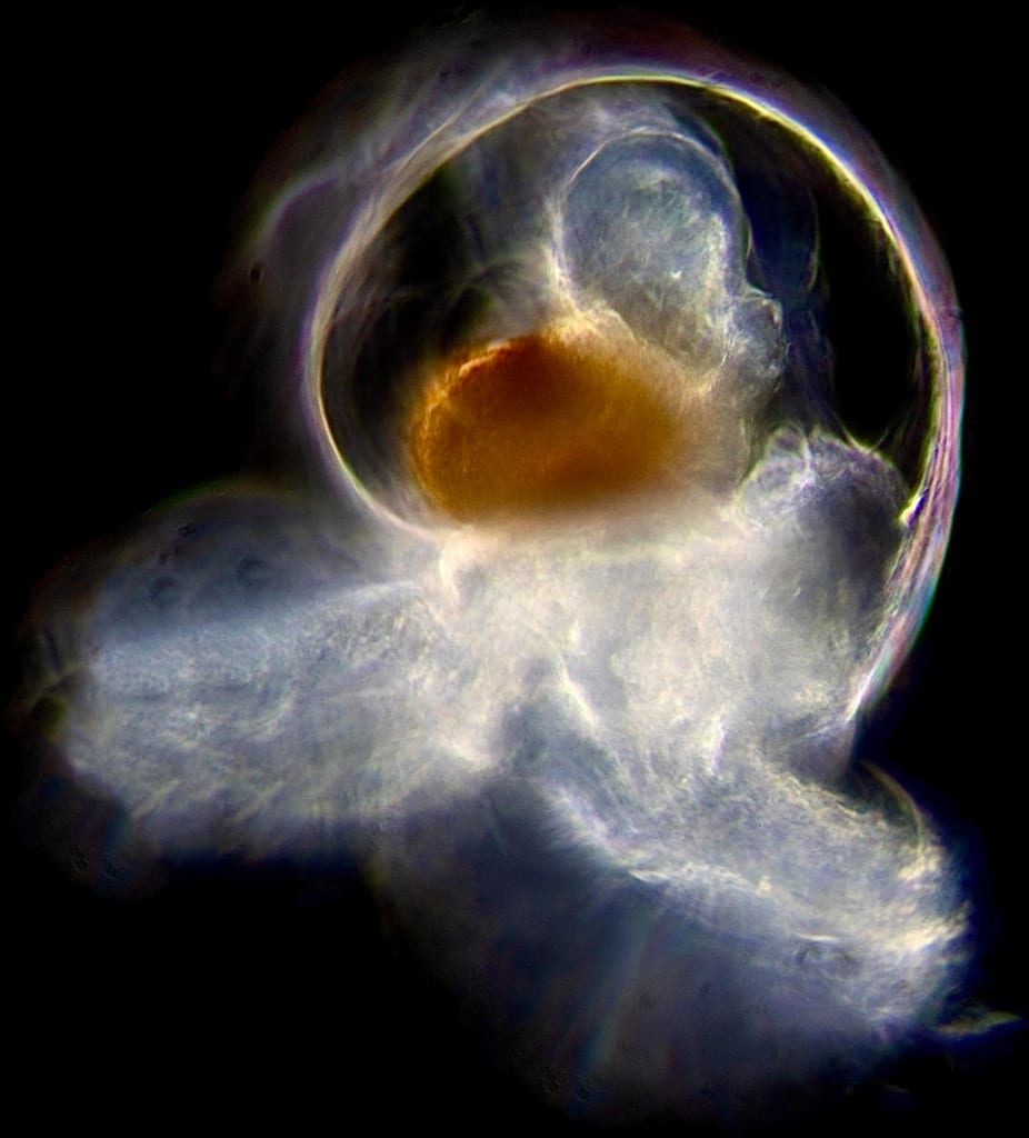 巻貝の仲間であるウミウシ。浮遊幼生の頃は小さな貝殻を持っています。