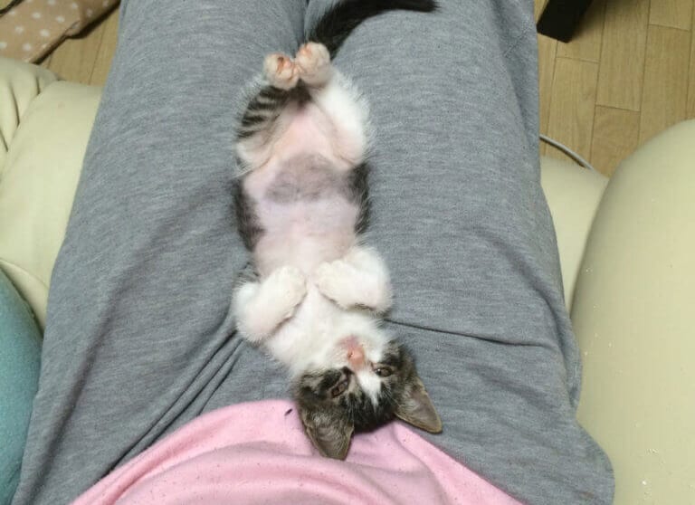 ポーチーはじつはお腹にドラ●もん的なポケットがついてるんだよね。この柄、大人になって毛が濃くなると見えにくくなってたけど、子猫の頃から変わらずずっとあるんだよね。そのポッケから体内のリンパ腫だけ取り出して、ぽいって捨てられればいいのになあ。
