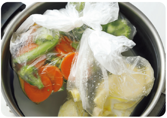 ひとつの鍋で複数の袋を同時に加熱できるから、効率よくいろんな料理が作れます。