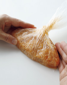 袋の中で食材と調味料が密着することで、味が中までしっかりとしみ込みます。