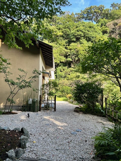 鎌倉の銭洗弁天からほど近い、山深い場所にひっそりと佇む一軒家。まさに隠れ家と呼ぶのに相応しいこの場所に、ワインサロンがあるのは外からはわからない。