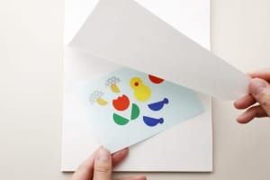 2. (1)の台紙の上に、薄い白い紙を重ねる。お絵かき帳だと挟みやすくて便利!