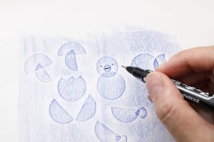 4. ペンで目と脚を描いて片脚立ちさせたら、できあがり。