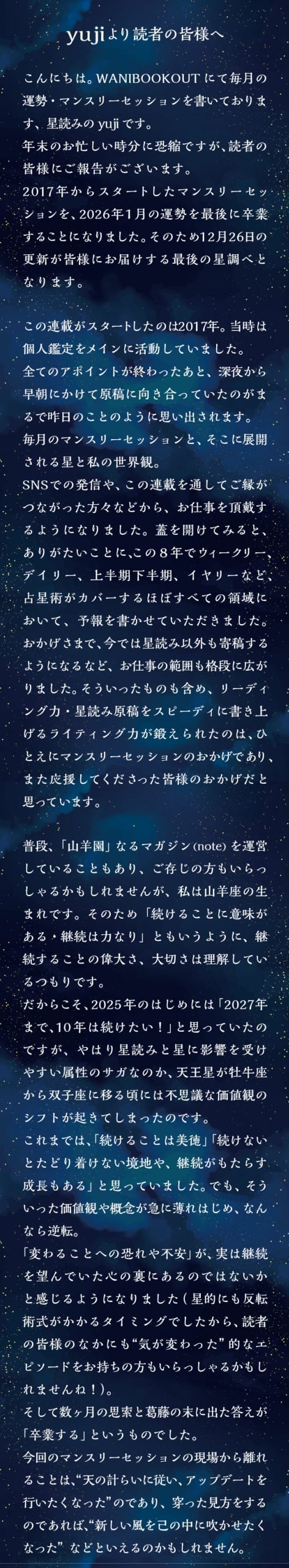 yujiさんから読者の皆様へ