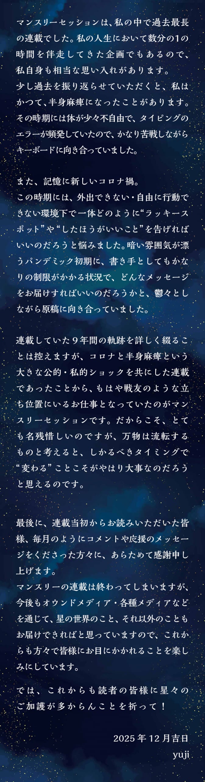 • 2025年12月「毎月の星占い」更新2025年12月「毎月の星占い」更新