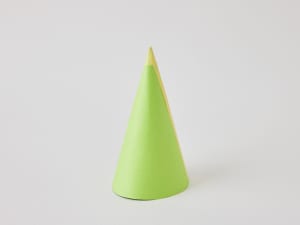 2.(1)を丸めて先をとがらせてツリーの形を作り、テープでとめる。