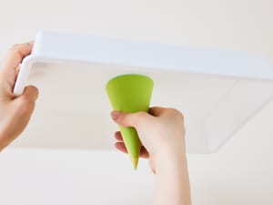 6. 型をそっと外したあと、スポイトで酢を吸い、ツリーにかける。