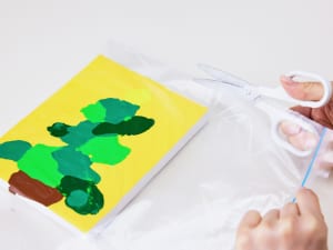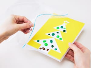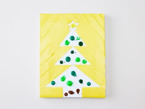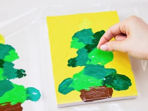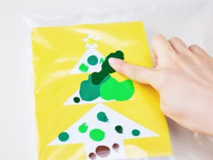 絵の具をのせて指で広げるだけで、すてきなアートになるクリスマス制作のアイデア。絵の具をつぶすだけなら赤ちゃんでもできちゃいます! ツリーだけでなく、いろいろな絵がこの方法で描けるのでチャレンジしてみてください。