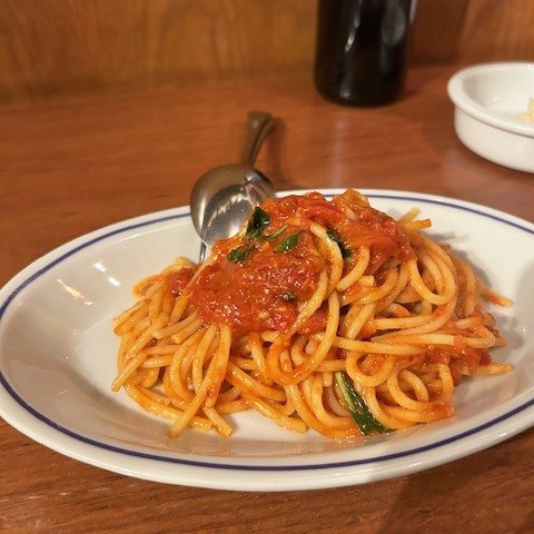 このあたりでかなりお腹は満足しているが、やっぱりパスタは外せない。おつまみ気分のまま、からすみパスタにいくのか、シンプルなトマトパスタもすっきりリフレッシュできてまた一から食事を始めたくなるほど。