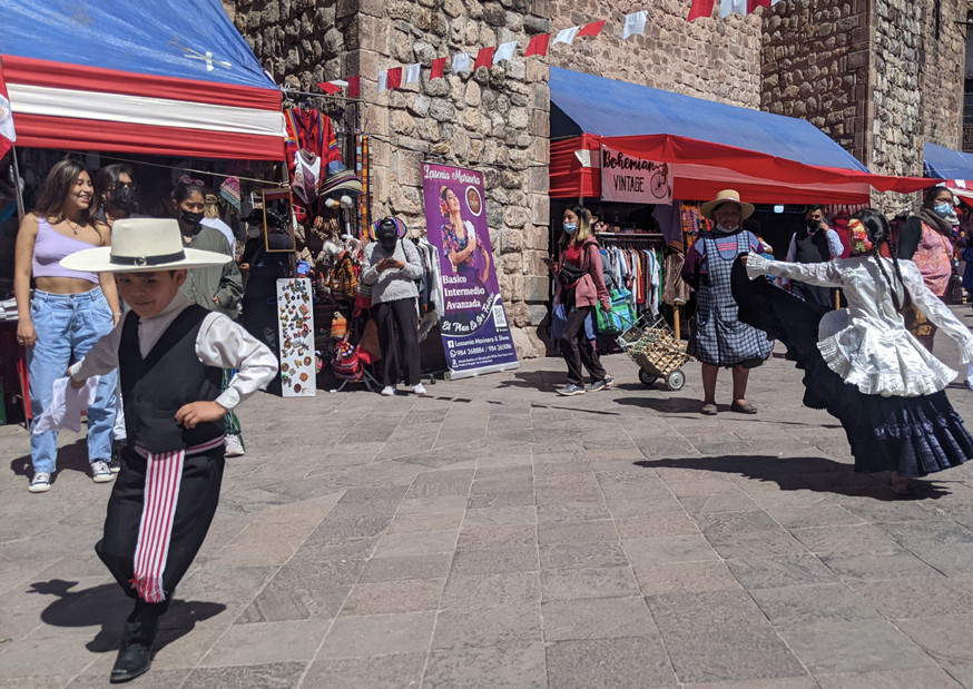 「ペルーの踊りといえば、無形文化遺産に登録されている南米三大ダンスの一つ、マリネラがある。男女ペアになり、ハンカチを持って踊るのが特徴だ。