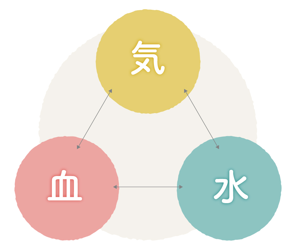 それこそが、本書のテーマ、「めぐりが悪いこと」によって起こるさまざまな不調です。くわしくは本編でお伝えしますが、ぼくがお伝えしたい「めぐり」は3つ。気と、血と、水のめぐり……つまり体の中の循環のことです。