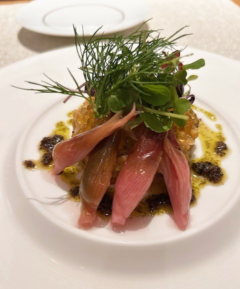 シャキシャキの葉野菜とグリーンアスパラやカリフラワー、最後にあしらわれたさつまいもチップスのカリカリ感……、食感の異なる季節の野菜たちをまとめるほんのり甘酸っぱい自家製のトマトドレッシングがなんとも味わい深い。これ、ボトルに入れて売ってくれませんか。
