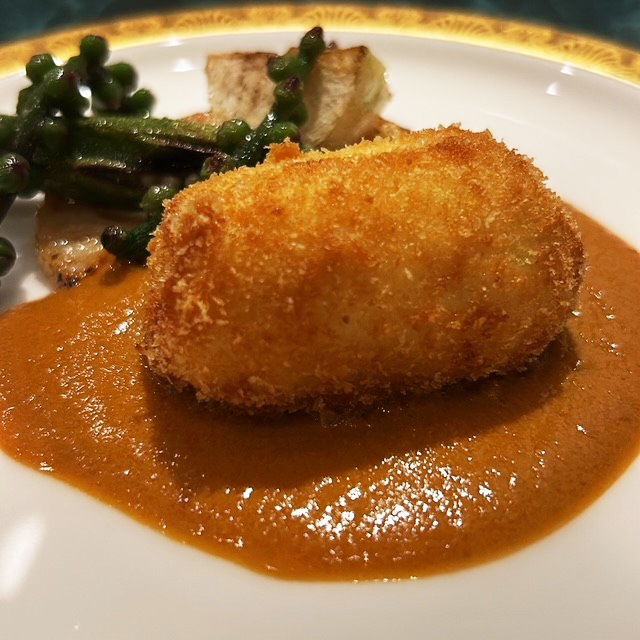 メインにはじっくり煮込んだビーフシチューやカリッと揚げられたコロモとまろやかなベシャメルソースのコントラストも鮮やかなカニクリームコロッケを。