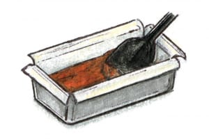 4. パウンド型やバッドにオーブン用シートを敷き、3を入れて平らにならす。