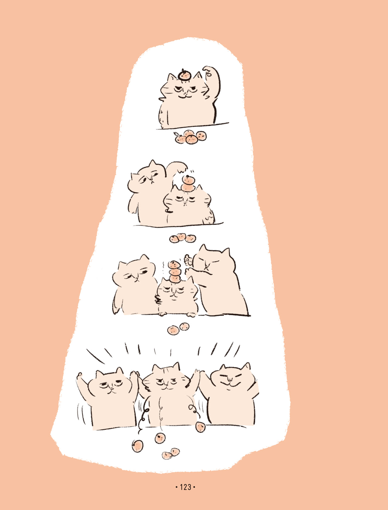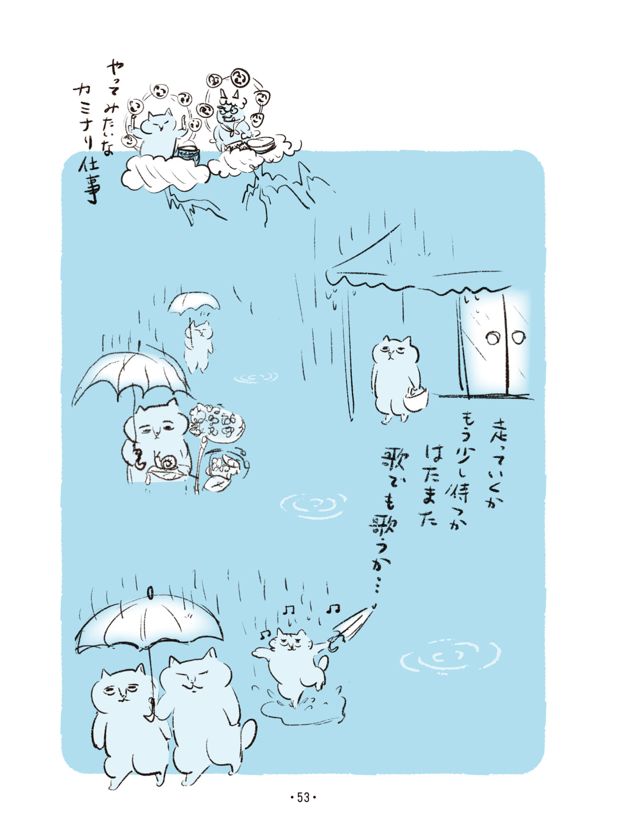 癒し系のふにゃっとした猫のイラストに身も心も癒されるばかりでなく、じつは、読んでいるとハッとするような哲学的考察も——カマノさんが「この本に描いてあるような発想が、私の表現活動や人とのコミュニケーションの源になっているのだと思います」と書かれているのも頷ける内容となっています。