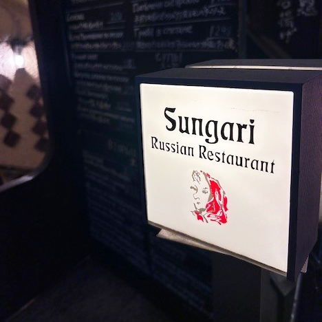 新宿駅東口からほど近い繁華街にあるのが今回ご紹介するロシア料理店のスンガリー。雑多な飲食店が立ち並ぶ中、そこだけポッと温かな光が灯った可愛らしいエントランスにまず期待が膨らむ。
