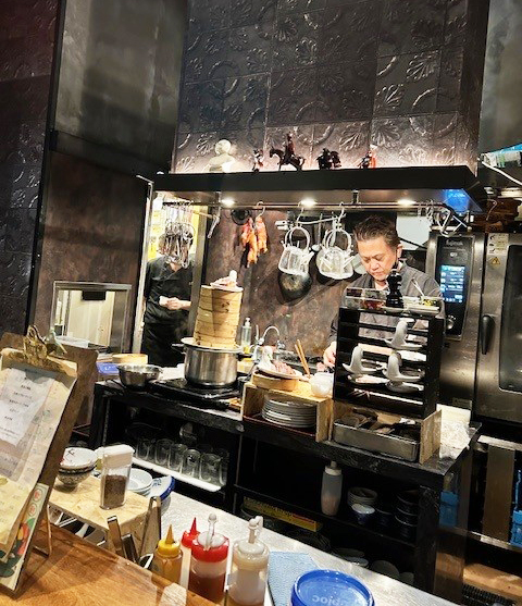 異国情緒あふれる店内は厨房を囲むカウンター8席ほど。吊るされたダックにワクワク、テンションが上がる。
